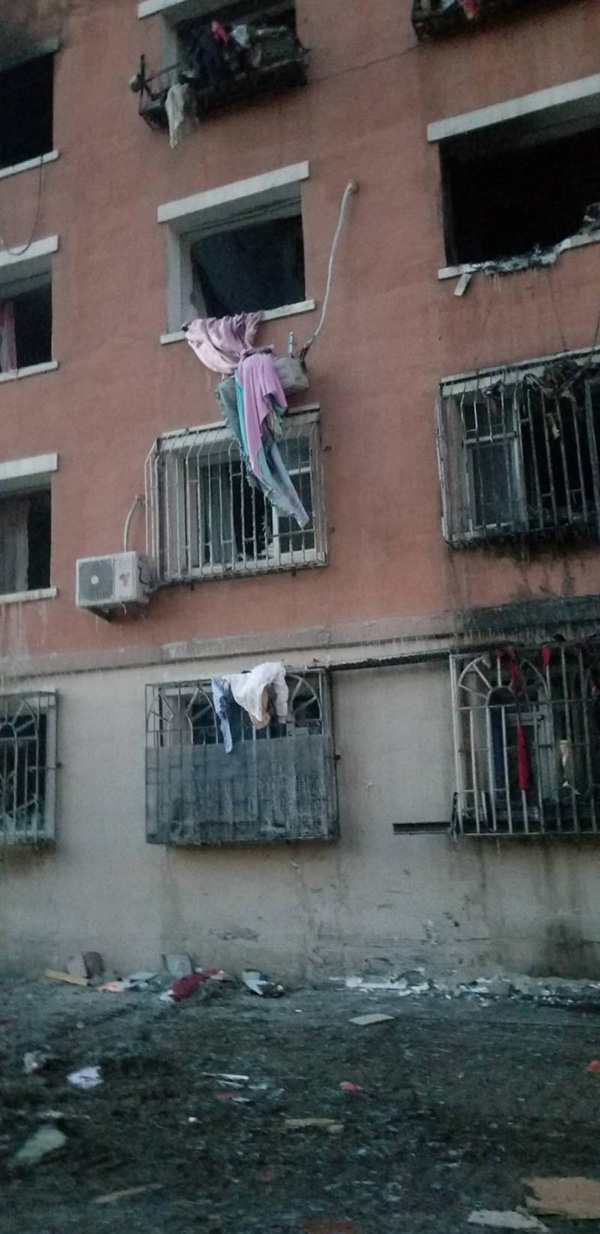 據(jù)一居民稱,四樓、五樓均有居民因爆炸身亡。多位居民告訴北青報(bào)記者,三樓住了一家六口,有五人死亡。“男主人開夜班出租車,當(dāng)時(shí)沒在家。死亡的是兩個(gè)老年人,還有男主人的妻子和他的兩個(gè)孩子,其中一個(gè)孩子才13個(gè)月大。”一居民稱。