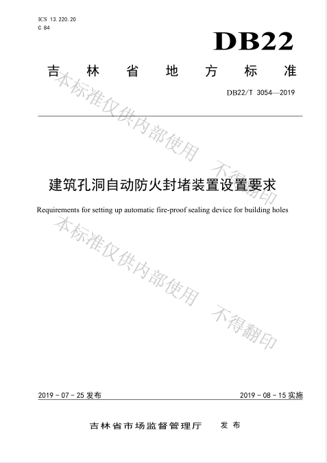 《建筑孔洞自動(dòng)防火封堵裝置設(shè)置要求》地方標(biāo)準(zhǔn)已于2019.8.15頒布實(shí)施