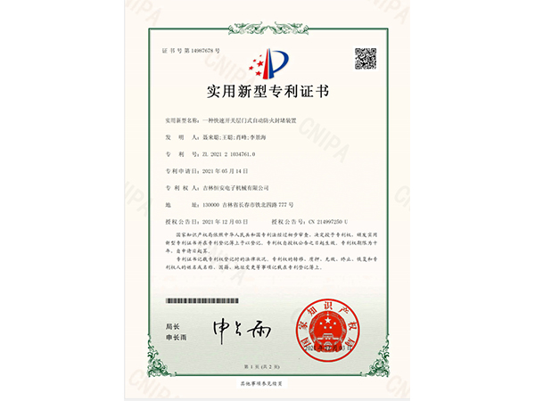 上一篇:實用新型專利證書